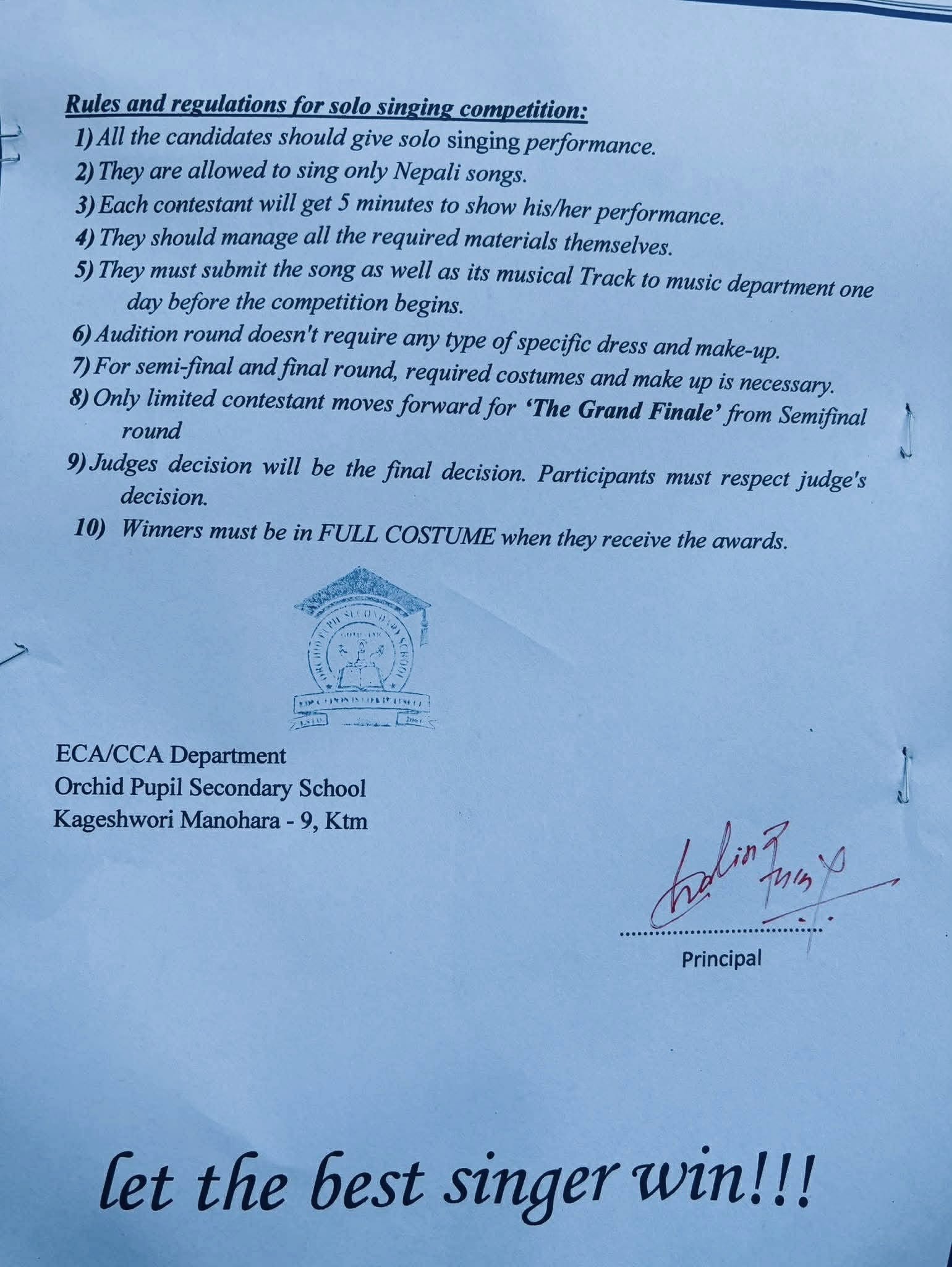 प्रतियोगिताको मूल्याङ्कन संगीत क्षेत्रका विज्ञ तथा अनुभवी निर्णायकहरूले गर्ने विद्यालयले जनाएको छ। विद्यालय प्रशासनले सबै विद्यार्थीलाई सक्रिय सहभागिताका साथ अर्किड आइडल सिजन–११ लाई सफल बनाउन आग्रह गरेको छ।