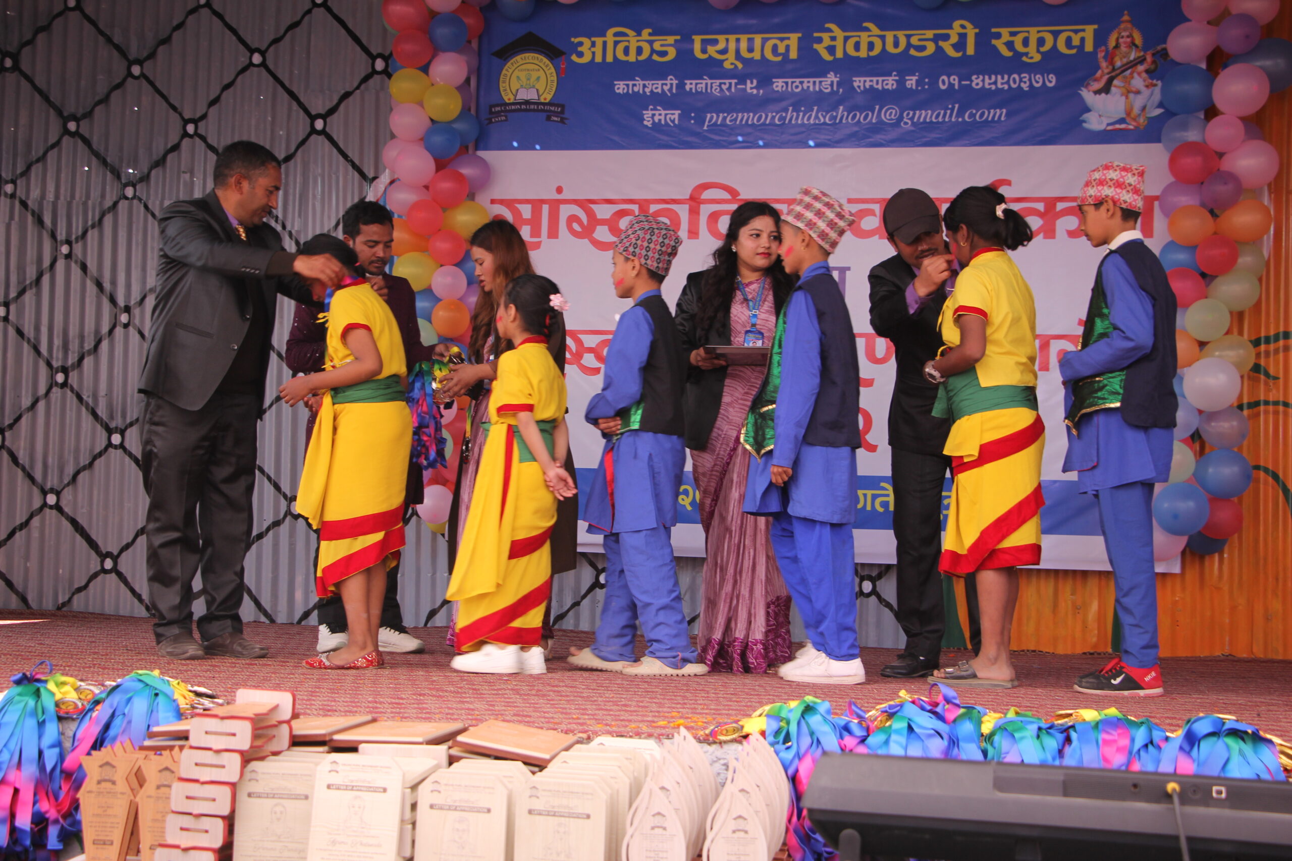 काठमाडौँ – काठमाडौँको गोठाटारमा अवस्थित अर्किड प्युपल सेकेन्डरी स्कुलले सरस्वती पूजाको अवसर पारेर सांस्कृतिक कार्यक्रम तथा पुरस्कार वितरण कार्यक्रम २०८२ भव्य रूपमा सम्पन्न गरेको छ । विद्यालय परिसरमा आयोजित कार्यक्रममा विद्यार्थीहरूले विभिन्न गीत, सङ्गीत तथा मनमोहक नृत्य प्रस्तुतिहरूमार्फत उपस्थित अभिभावक तथा अतिथिहरूको मन जितेका थिए । कार्यक्रमको संयोजन विद्यालयका संयोजक नरेन्द्र पाण्डेयले गरेका थिए । कार्यक्रममा शैक्षिक, अनुशासन, खेलकुद तथा अतिरिक्त क्रियाकलापमा उत्कृष्ट प्रदर्शन गर्ने विद्यार्थीहरूलाई विभिन्न विधामा पुरस्कार तथा मेडल वितरण गरिएको थियो । साथै एसइइ २०८१ मा उत्तीर्ण विद्यार्थीहरूलाई विशेष सम्मान गरिएको विद्यालयले जनाएको छ । यसै अवसरमा विद्यालयमा बिहान सरस्वती पूजा पनि विधिवत रूपमा सम्पन्न गरिएको थियो । कार्यक्रमलाई सम्बोधन गर्दै विद्यालयका प्रिन्सिपल चोलेन्द्र बहादुर कार्कीले शैक्षिक गुणस्तरका साथै संस्कार, संस्कृति र सिर्जनात्मक क्षमताको विकासमा विद्यालय निरन्तर क्रियाशील रहेको बताए । त्यस्तै विद्यालयका सञ्चालक तथा निर्देशक प्रेमकुमार भुजेलले विद्यार्थीको समग्र विकास नै विद्यालयको प्रमुख लक्ष्य रहेको उल्लेख गर्दै अभिभावक, शिक्षक तथा कर्मचारीहरूको सहकार्यले विद्यालयलाई उत्कृष्ट बनाउँदै लगिएको धारणा व्यक्त गरे । कार्यक्रममा शिक्षक तथा कर्मचारीहरूलाई पनि सम्मान गरिएको थियो । वर्षभरि उत्कृष्ट कार्यसम्पादन गर्ने शिक्षकका रूपमा सम्झना दाहाल सम्मानित भएकी छिन् । कार्यक्रममा अभिभावकहरूको बाक्लो उपस्थिति रहेको थियो । अभिभावकहरूले विद्यालयले आयोजना गरेका यस्ता कार्यक्रमहरूले विद्यार्थीको आत्मविश्वास र प्रतिभा विकासमा महत्वपूर्ण योगदान पुर्याउने प्रतिक्रिया दिएका थिए ।