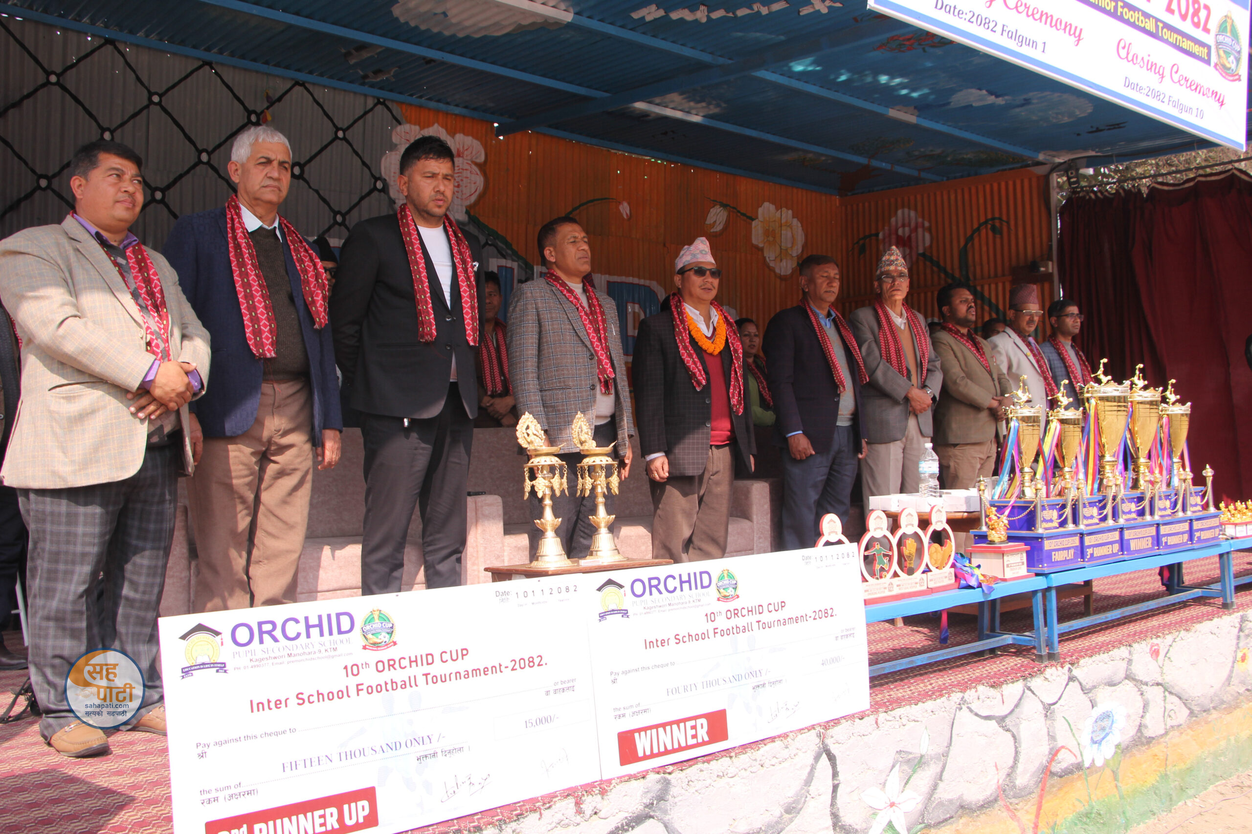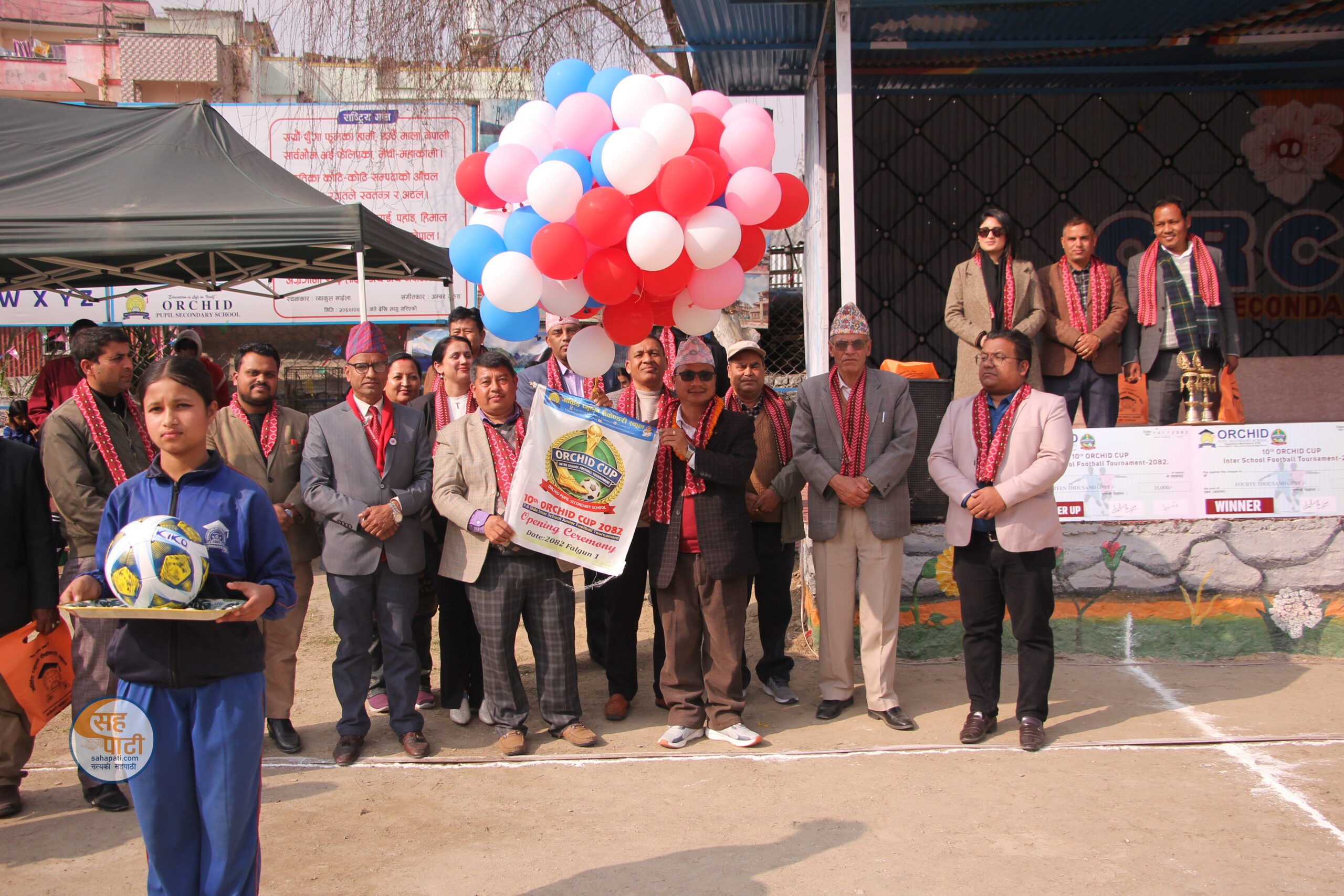 काठमाडौं । काठमाडौँको गोठाटारमा अवस्थित अर्किड प्युपल सेकेन्डरी स्कुलको आयोजनामा १०औँ ‘अर्किड कप’ सेभेन ए साइड अन्तरविद्यालय जुनियर छात्र फुटबल प्रतियोगिताको आज भव्य उद्घाटनसँगै औपचारिक रूपमा सुरुवात गरिएको छ । प्रतियोगिताको उद्घाटन समारोहका प्रमुख अतिथि नेपालको वर्तमान राष्ट्रिय गानका रचनाकार प्रदीप राई रहेका थिए । उद्घाटन सत्रको सभाध्यक्ष विद्यालयका संस्थापक तथा सञ्चालक प्रेमकुमार भुजेल ले गरेका थिए । कार्यक्रममा नेसनल प्याब्सन काठमाडौंका अध्यक्ष अमृत खड्का, उपाध्यक्षहरू, सहसचिव प्राप्ति मल्ल, नेरिक एकेडेमीका प्रिन्सिपल मिलन केसी, विश्वज्ञान पाठशालाका प्रिन्सिपल मातृका कार्की लगायत विभिन्न विद्यालयका संस्थापक तथा प्रिन्सिपलहरूको उल्लेखनीय उपस्थिति रहेको थियो ।