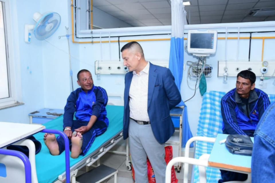 डोल्पाबाट उद्धार गरिएका ५ प्रहरीको स्वास्थ्य अवस्था बुझ्न आईजिपी कार्की अस्पतालमा