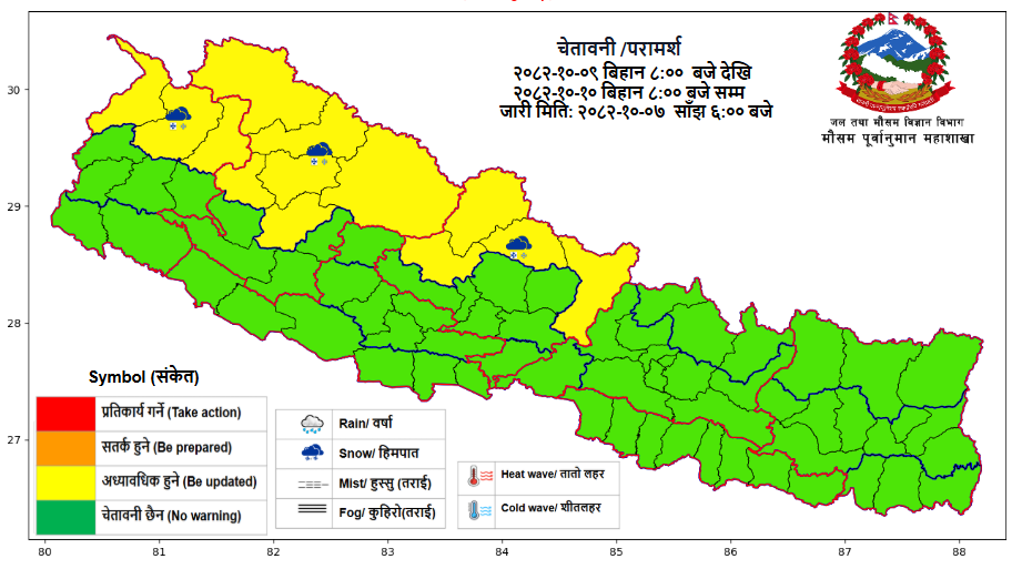 आज र भोलि यी स्थानमा वर्षा र हिमपातको सम्भावना, काठमाडौँमा कस्तो असर ?