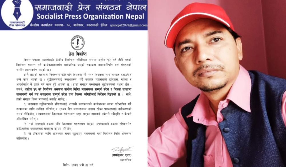 पत्रकार महासंघकाे निर्वाचन मिति सार्नुपर्छ: समाजवादी प्रेस संगठन नेपाल
