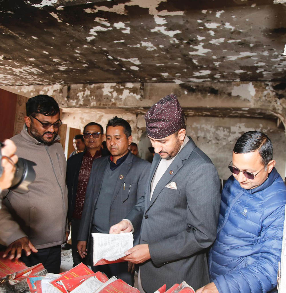 मन्त्रीसहितको सरकारी टोलीबाट आगजनी भएको नेपाली कम्युनिष्ट पार्टीको कार्यालय अनुगमन