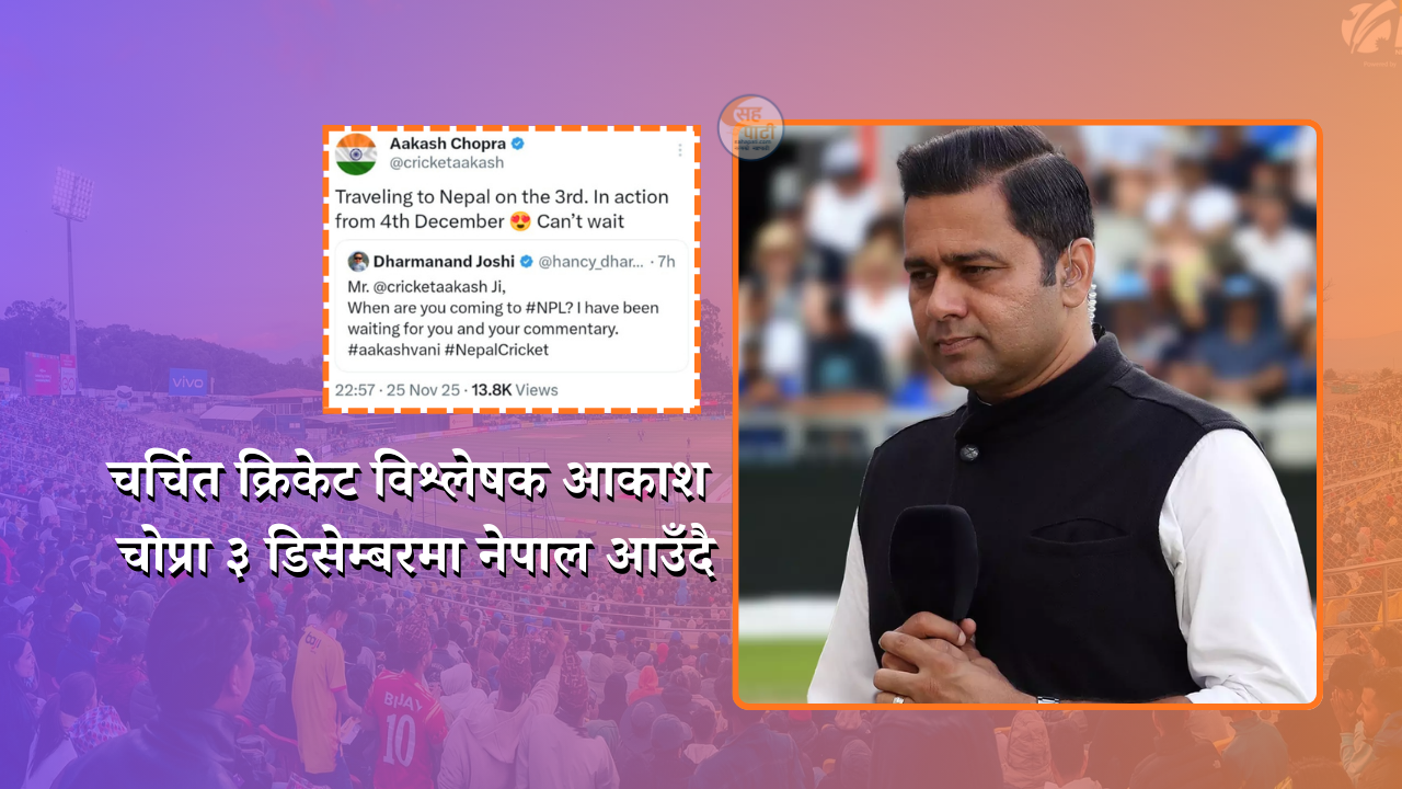 चर्चित क्रिकेट विश्लेषक आकाश चोप्रा ३ डिसेम्बरमा नेपाल आउँदै, ४ तारिखदेखि NPL कमेन्ट्रीमा सक्रिय हुने
